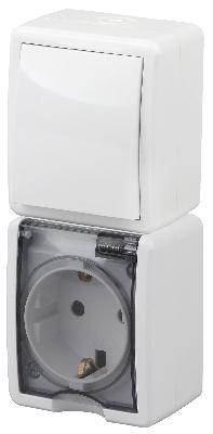 11-7407-01 ЭРА Блок розетка+выкл. верт. IP54, 16A(10AX)-250В, ОУ, Эра Эксперт, белый (5/50/800)