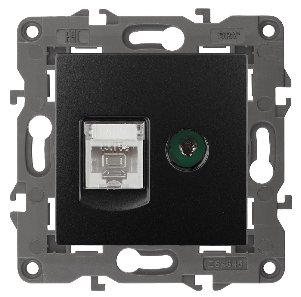 14-3110-05 ЭРА Розетка RJ45+TV, IP20, антрацит (10/100/3200)