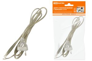 Шнур с плоской вилкой с вырезом ШУ04 ШВВП 2х0,75мм2 1,7 м. прозрачный TDM