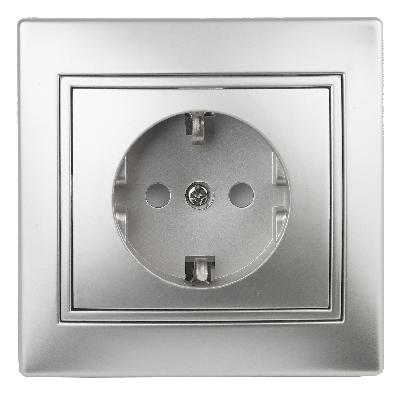 Розетка Intro Plano 1-202-03 с заземлением 2P+E Schuko, 16А-250В, IP20, СУ, алюминий