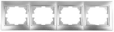 Рамка для розеток и выключателей Intro Plano 1-504-03 на 4 поста горизонтальная, СУ, алюминий