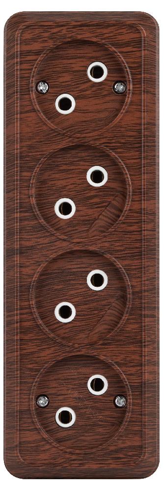 Розетка Intro Quadro 2-207-10 без заземления четырехместная 4х2P, 16А-250В, IP20, ОУ, венге