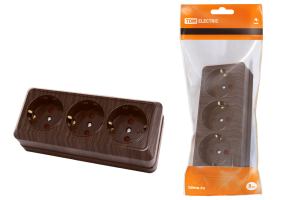 Розетка 3-х местная горизонтальная 2П+3 открытой установки IP20 16A с з/ш бук "Ладога" TDM