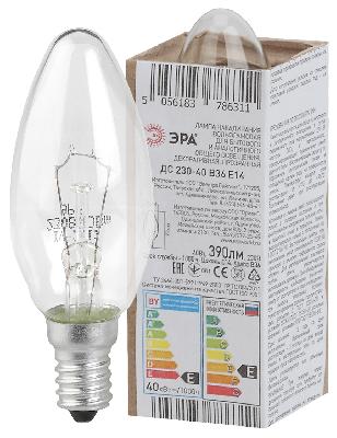 Лампочка ЭРА B36 40Вт Е14 / E14 230В свечка прозрачная в гофре