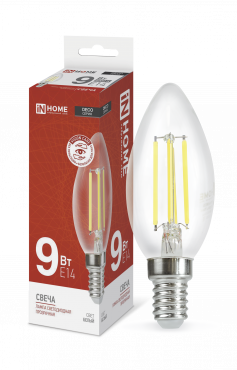 Светодиодная лампа ТМ IN HOME в форме свечи LED-СВЕЧА-deco с инновационной филаментной нитью в качестве источника света применяется для основного и декоративного освещения в жилых и общественных помещениях. Высокая экономичность светодиодной лампы позволяет сокращать энергопотребление до 90% (по сравнению с лампами накаливания). Помимо особой декоративности дизайна, включает в себя все преимущества светодиодных ламп: высокий класс энергоэффективности, малая теплоотдача, яркий световой поток, равномерное свечение с безопасным коэффициентом пульсации, срок службы 30 000 часов. Гарантия 2 года.