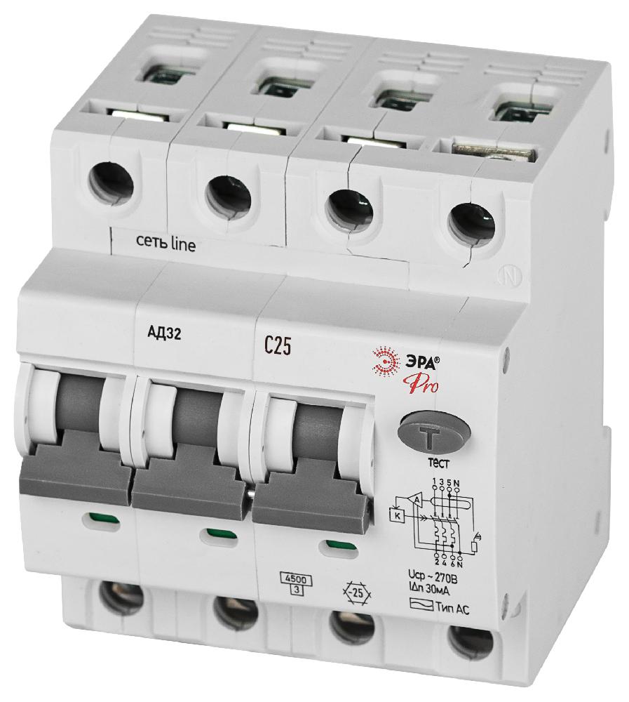 АВДТ 4,5кА ЭРА PRO D32E4C25АC30P АД-32 электронное 3P+N C25 30мА тип АC защита 230В