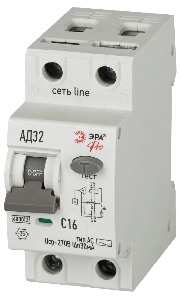 АВДТ 6кА ЭРА PRO D326E2C16АC30P АД-32 электронное 1P+N C16 30мА тип АC защита 270В