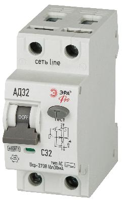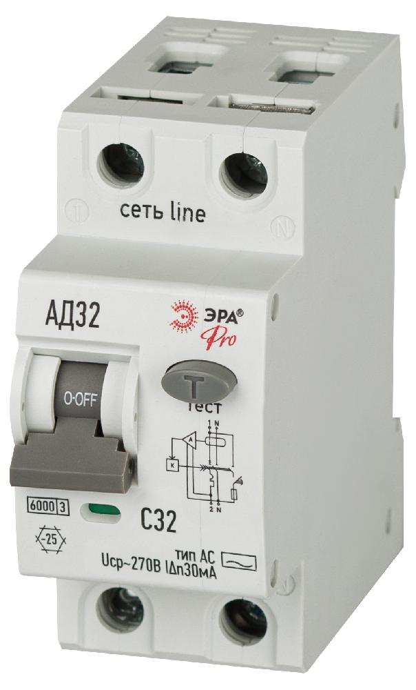 АВДТ 6кА ЭРА PRO D326E2C32АC30P АД-32 электронное 1P+N C32 30мА тип АC защита 270В
