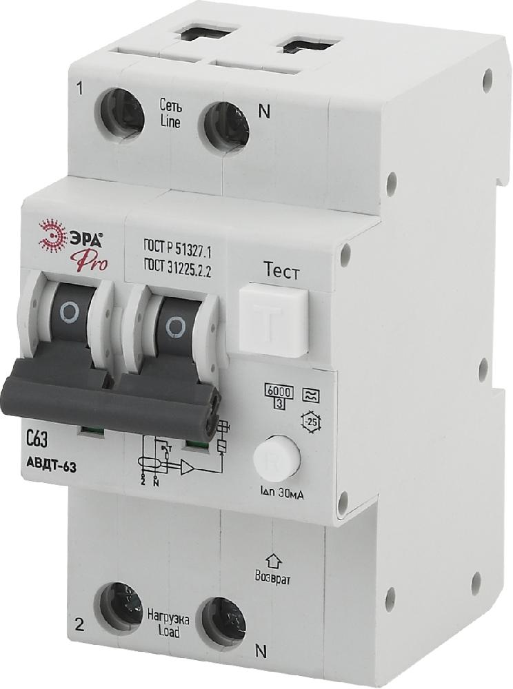 Автоматический выключатель дифференциального тока ЭРА PRO NO-902-05 АВДТ 63 C63 30мА 1P+N тип A