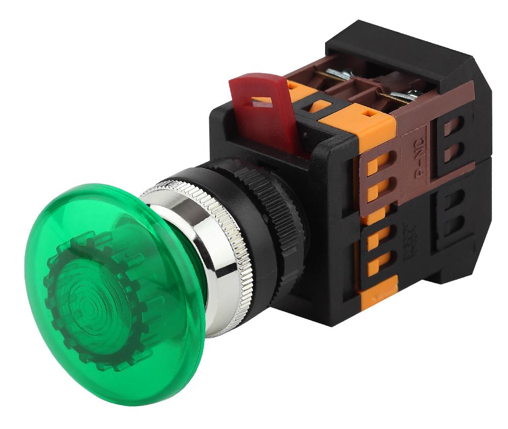 Кнопка ЭРА BBG20-AELA-K06E AELA22 Грибок зеленый d22мм неон 240В 1з+1р