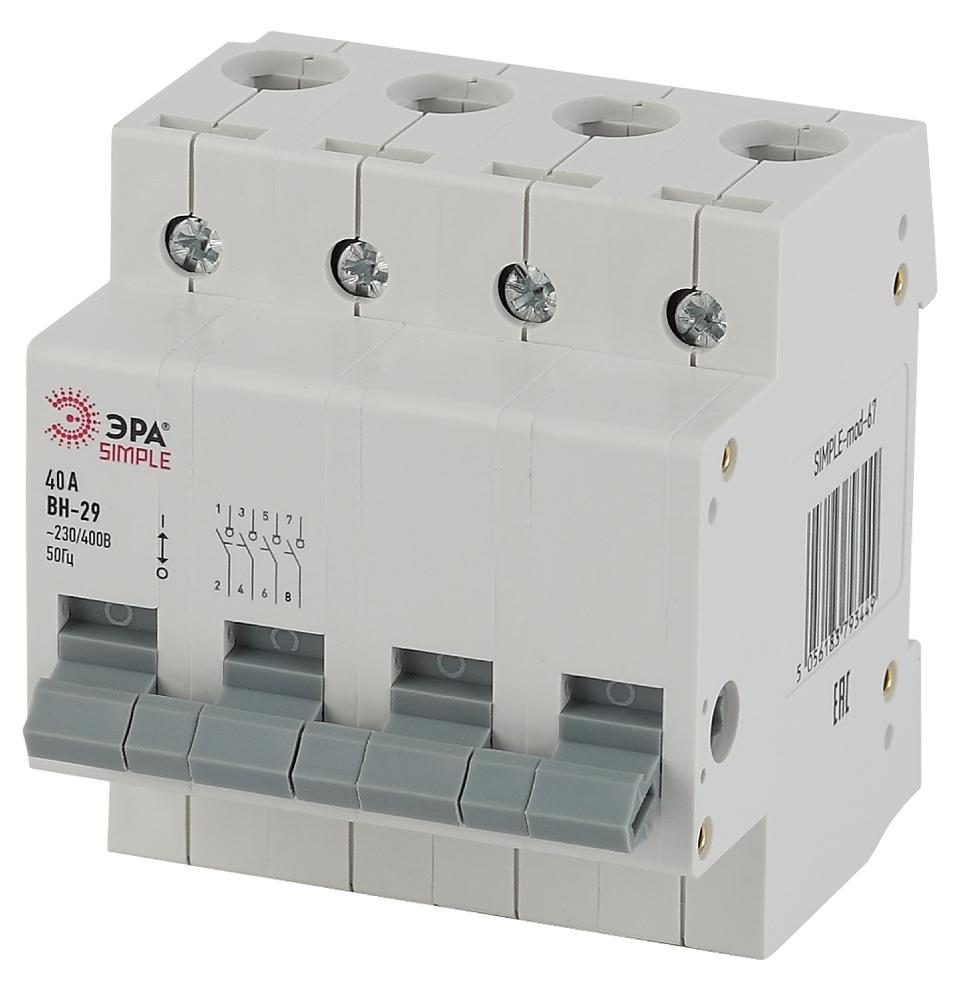 SIMPLE-mod-69 ЭРА SIMPLE Выключатель нагрузки 4P 40А ВН-29 (3/45/900)