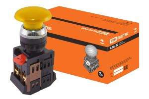 Кнопка AEА-22 "Грибок" желтый d22мм 1з+1р TDM