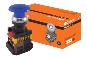 Кнопка AELA-22 "Грибок" синий d22мм неон/230В 1з+1р TDM