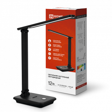 Светильник наст сд SIMPLE ССО-06Ч 12Вт 600Лм сенсор, с подставкой п/тел, адапт ЧЕРНЫЙ IN HOME