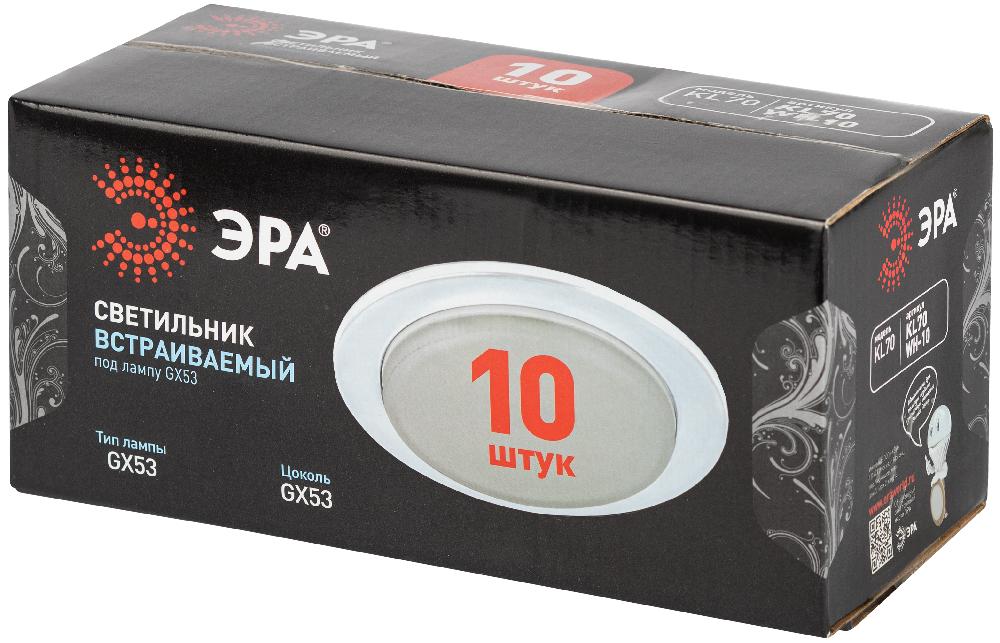 Встраиваемый светильник под лампу GX53 ЭРА KL70 WH-10 белый упаковка 10 шт