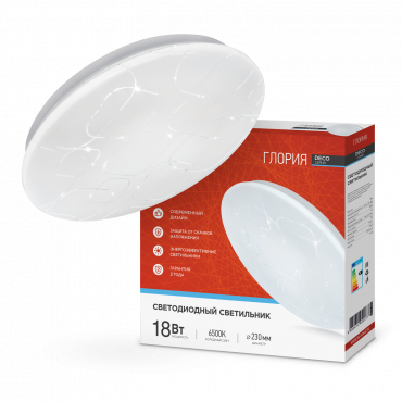 Светодиодный светильник ГЛОРИЯ серии DECO ТМ IN HOME, изготовленный в белом цвете с простыми чистыми линиями, станет удачным решением лаконичных интерьеров. Линейка светильников ГЛОРИЯ представлена в трех размерах от 190 до 350 мм. Несколько вариаций мощности (в диапазоне от 12 Вт до 36 Вт) позволяют подобрать оптимальный осветительный прибор в зависимости от конфигурации и габаритов помещения. Применение Светодиодные светильники ГЛОРИЯ серии DECO предназначены для внутреннего освещения жилых помещений, подъездов и сферы ЖКХ, офисных и административных учреждений, магазинов, а также холлов, коридоров, лестничных пролётов, подсобок и других помещений вспомогательного назначения. Преимущества Современные светильники серии DECO, работающие на основе последнего поколения светодиодов, обеспечивают яркий равномерный световой поток при максимальной экономии электроэнергии. Отсутствие пульсации гарантирует сохранность здоровья глаз. Светодиодные светильники являются одним из самых экологически безвредных источников света и не требуют специальной утилизации и переработки. Светильники получили сертификат таможенного союза EAC. Производятся по ГОСТу Р МЭК 60598-1-2011. Монтаж Светодиодные светильники серии DECO применяются для работы в сетях переменного тока напряжением 230В ± 10% с частотой 50 герц. Перед установкой следует убедиться в правильности напряжения питающей сети и наличии защитного устройства в цепи (автоматический выключатель, предохранитель). Этапы установки: отключите сетевое напряжение, извлеките светильник из упаковки, открутите плафон светильника, повернув его по часовой стрелке. Через клеммную колодку подключите подготовленные концы проводов осветительного прибора к проводу сети. Установите светильник на поверхности и зафиксируйте при помощи дюбелей и саморезов. Сборку светильника следует осуществлять в обратной последовательности.